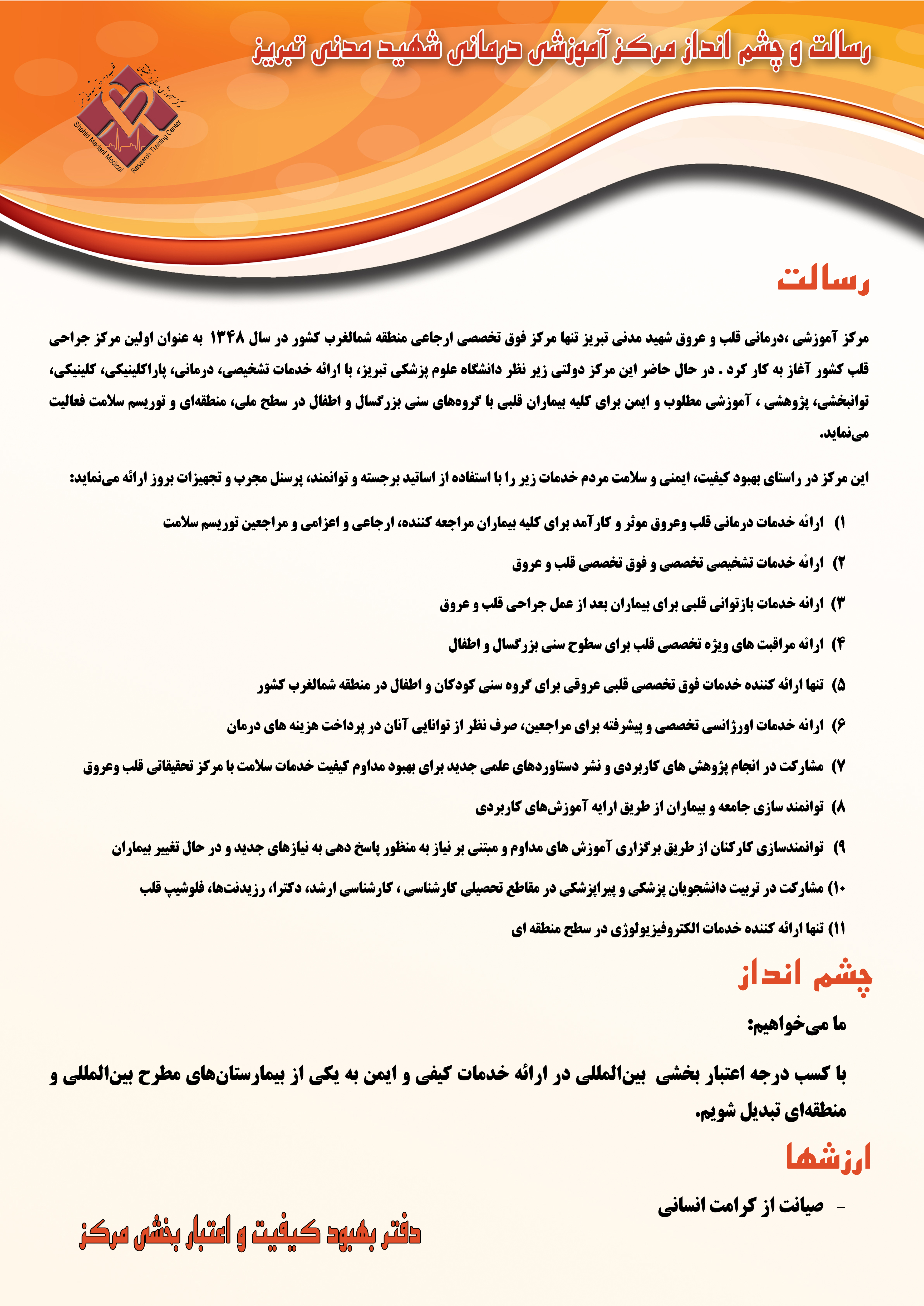 مجوز اعتباربخشی 4 ساله آموزشی مرکز شهید مدنی تبریز از سوی وزارت بهداشت اخذ ...تجلیل استانداری آذربایجان شرقی از ریاست مرکز قلب و عروق شهید مدنی تبری...