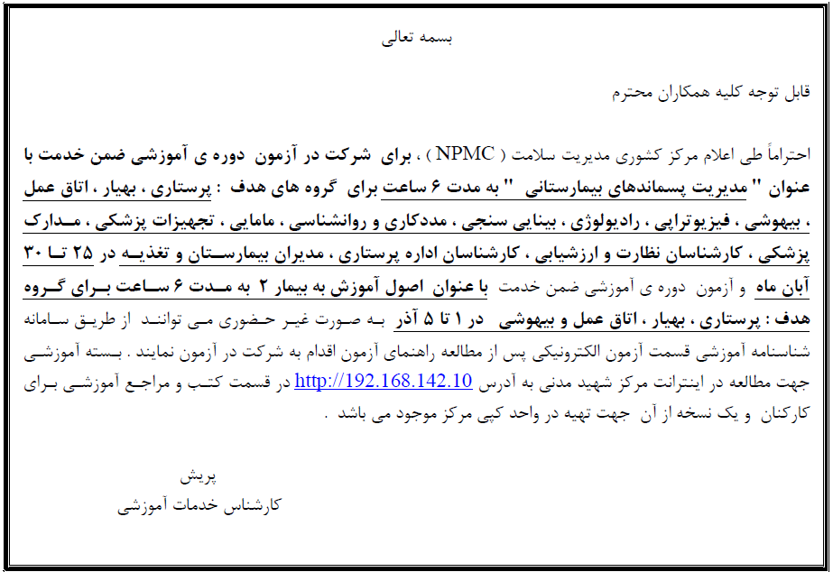 اطلاعیه برگزاری کلاسهای آموزش ضمن خدمت