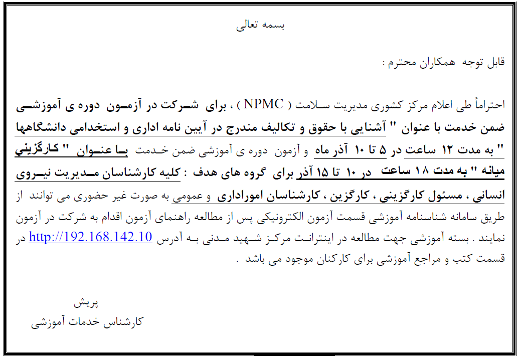 اطلاعیه برگزاری کلاسهای آموزش ضمن خدمت