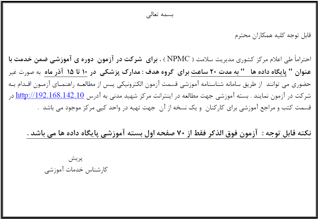 اطلاعیه برگزاری کلاسهای آموزش ضمن خدمت