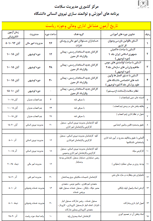 تقویم آزمون های مشاغل اداري و مالی و حوزه ریاست