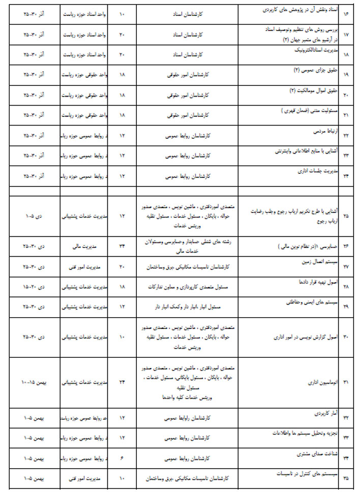 اطلاعیه برگزاری کلاسهای آموزش ضمن خدمت