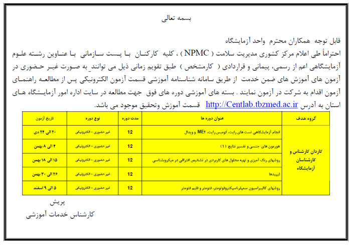 قابل توجه همکاران محترم واحد آزمایشگاه