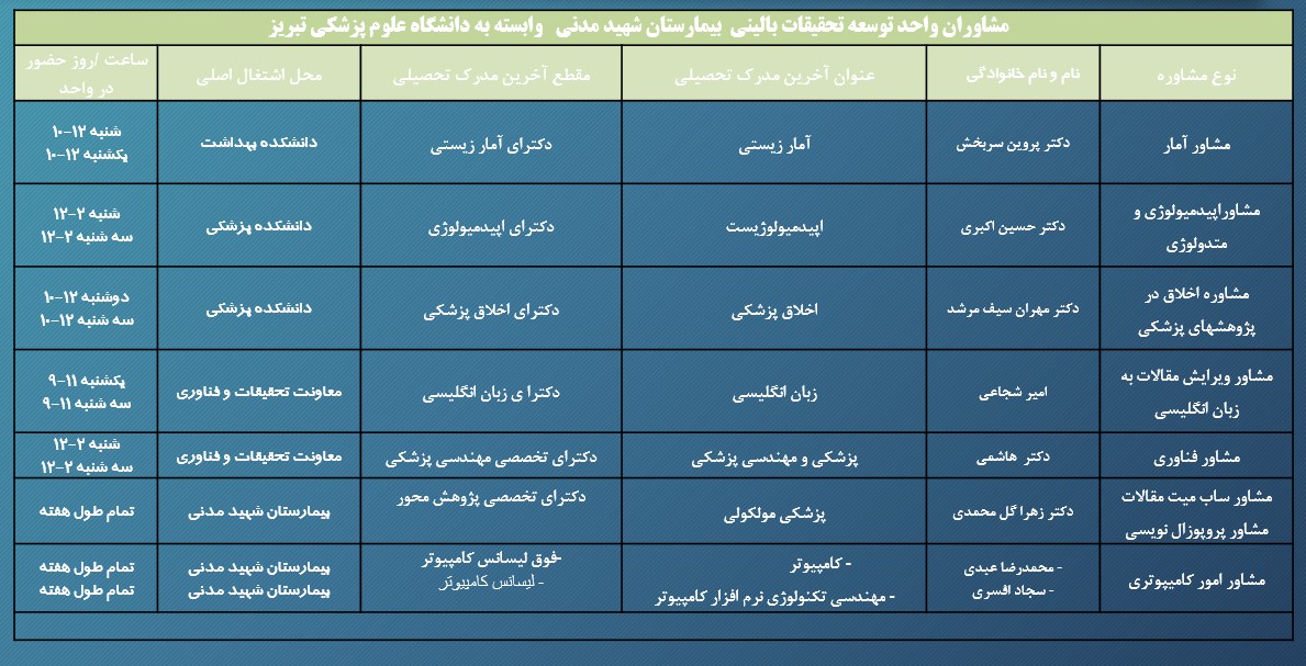 به واحد توسعه تحقیقات بالینی | مرکز آموزشی درمانی شهید مدنی دانشگاه علوم پزشکی تبریز خوش آمدید.
